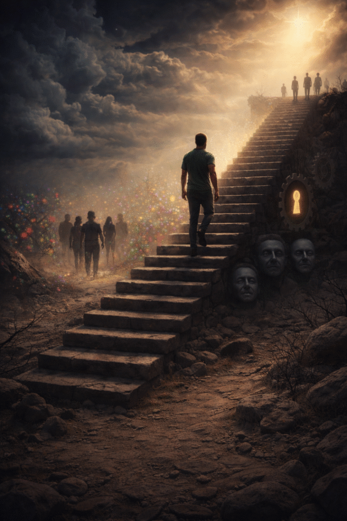 A transcendência implica isolamento existencial. Ao compreender os mecanismos ocultos que regem o mundo, perderás a capacidade de se encantar com ilusões superficiais. Essa transição não ocorre como recompensa gloriosa, mas como consequência inevitável do amadurecimento.